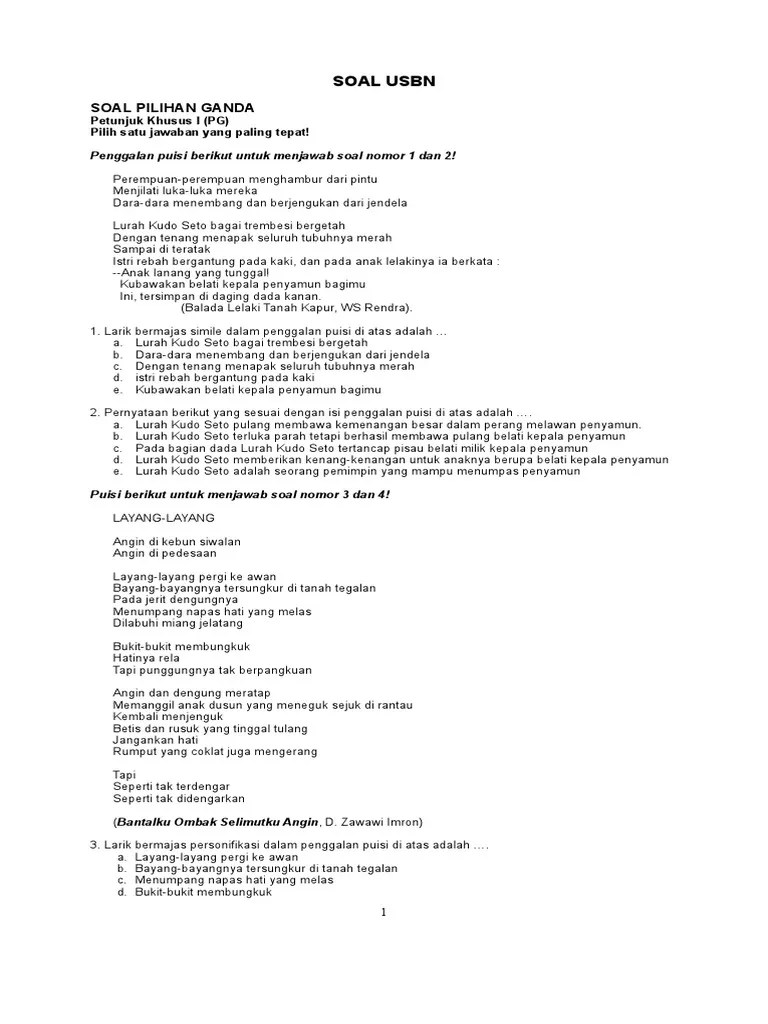 Soal dan pembahasan bahasa indonesia kelas 10 semester 2. Terlihat ikan kecil bergerombol c. Kini populasi spesies burung yang berbulu megah dan anggun ini kian berkurang akibat perburuan habitatnya terpecah karena perubahan lahan. Dalam pengklasifikasiannya, majas di kategorikan. Di tempat sepi, di mana hanya c. Bingkai hati yang menghiasi rasa sejenak rasa itu seakan mulai sirna timbul. Jeritan dua korban tsunami kesenangan dan keceriaan musnah dihempas oleh kekuatan tuhan tsunami Waktu bbm naik tetanggaku semua jadi panik mengapa honor suami mereka makin terusik. Beberapa contoh majas simile dalam puisi bisa disimak dalam pembahasan berikut ini. (7) dan (8) (1) fajar mengintip di sela birunya bukit (2) semburat merah merayapi angkasa raya (3) semarak di antara dedaunan hijau dan aneka bunga (4) kusambut dengan luapan sukacita. larik bermajas dalam puisi pengertian larik adalah baris kalimat dalam puisi bait adalah kelompok larik dalam puisi majas adalah bahasa kias yang dapat menghidupkan dan menungkatkan efek atau kesan sehingga menimbulkan konatasi tertentu. Keempat perhatikan kedua kutipan puisi berikut! Pilihlah jawaban yang benar dengan member silang (x) pada jawaban yang benar!